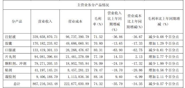 在业绩说明会上,潘鹏提及公司热毒宁注射液、银杏二萜内酯葡胺注射液及金振口服液三大品种具备较大发展潜力,公司将分阶段推动其销售规模的恢复与提升。然而今年一季度数据显示,公司核心产品注射液品类实现营收约3.4亿元,同比降幅达36.86%。该核心品类在年内能否实现销量增长,仍需观察后续市场表现。