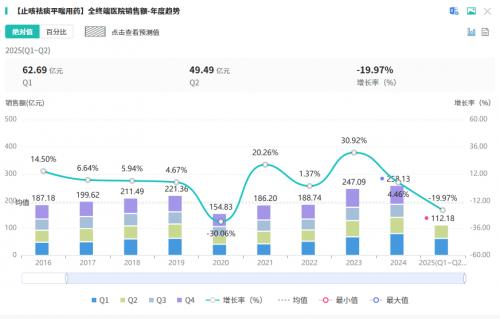 据摩熵医药数据库的数据显示,2024年全终端医院中药止咳祛痰平喘用药销售总额突破 250亿元,同比增长 4.46%;2025年上半年销售额已超110亿元。在这片竞争激烈的市场中,康缘药业凭借8.25%的市场份额,稳稳跻身院内销售前5之列。泻白散颗粒的获批上市,无疑将为康缘药业在这片百亿市场中进一步拓展版图提供有力支撑,为公司带来新的业绩增长点。