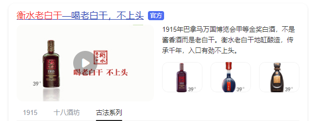 近些年,老白干酒在官网介绍中写着,“1915年,巴拿马万国博览会,甲等金奖白酒不是酱香酒,而是老白干”。老白干酒试图模仿“老大哥”贵州茅台的招式来包装自己进军高端市场的野心昭然若揭。
