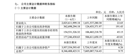 中国经济网北京8月27日讯昨日晚间,老白干酒发布《2022年半年度报告》显示,今年上半年公司实现营业收入20.26亿元,同比增长22.65%;归属于上市公司股东的净利润为3.63亿元,同比增长191.43%;经营活动产生的现金流量净额为1.77亿元,同比下降65.01%。
