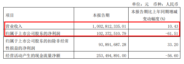 4月26日晚间,老白干酒发布的一季报显示:公司实现营业收入10.03亿元,同比增长10.43%;归母净利润1.02亿元,同比减少61.51%。