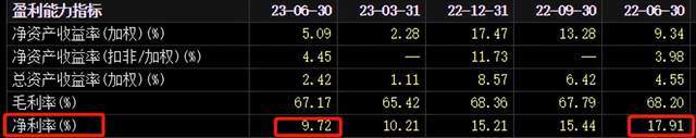 盈利指标方面,2023年上半年,老白干酒的净利率为9.72%,同比下滑8.19个百分点,2022年上半年的净利率为17.91%。同期,行业平均净利率为15.34%,今年上半年老白干酒的净利率数值低于行业平均值。