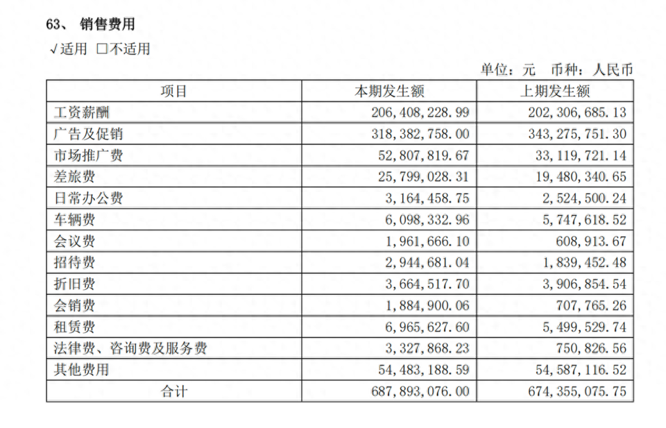 2023年一季度,老白干酒的销售费用为2.6亿元,同比减少了7413.52万元,销售费用率为25.9%。今年上半年,老白干的销售费用为6.88亿元,同比增长2.01%。销售费用率再次突破30%,达到30.82%。