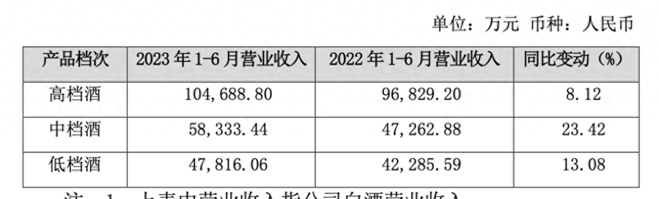按产品档次分类,上半年该公司高中低三档产品的营收分别为10.47亿元、5.83亿元、4.78亿元,分别同比增长8.12%、23.42%、13.08%。