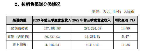 分产品来看,前三季度,老白干酒的高档酒、中档酒、低档酒均保持两位数增长,同比增速分别为11.09%、19.54%、14.45%。2022年,公司上述产品同比增速分别为22.79%、18.42%、-1.33%。对比可见,2023年前三季度公司高档酒增速明显下滑,中档酒增速稍有提升,低档酒表现大幅改善。而在今年上半年,公司高档酒同比增速降至个位数。