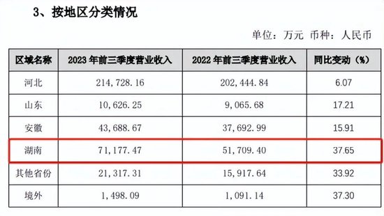 从体量和增速看,武陵酒正在老白干酒中扮演越来越重要的角色。2023年前三季度,武陵酒所在的湖南地区营收规模仅次于老白干酒大本营河北,而营收增速最为迅猛37.65%,河北地区的增速最低,为6.07%。