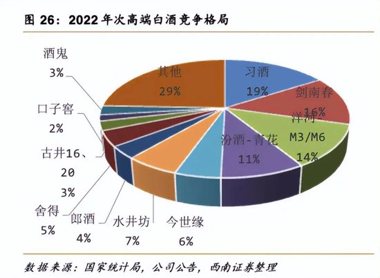 国联证券4月份的研报中,茅台、五粮液、泸州老窖占据高端白酒60%以上份额。西南证券的研报整理了2022年次高端白酒竞争格局,涉及的公司有习酒、剑南春、洋河、山西汾酒等,没有老白干酒。
