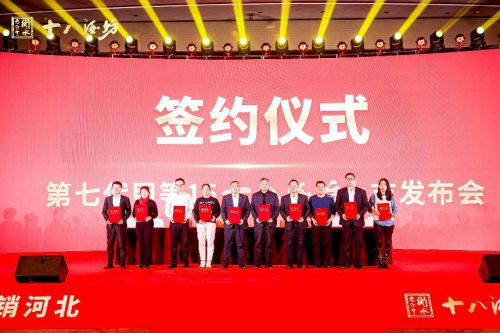 老酒多,更绵甜,代表了消费者对第七代甲等15十八酒坊的认可,第七代酒体由中国白酒首席品酒师李泽霞设计研发,基于消费者的需求,以口味和舒适度作为突破点,不断提升新时代商务人群用酒体验;新产品瓶体包装由北岭俊设计事务所创始人兼设计总监张朝阳先生创意设计,瓶体以红色为主体,上半部配金色纹路,外观大气精致,尽显文化厚重和品质匠心,赢得了终端烟酒店客户的高度评价。会上,来自石家庄各县区的终端客户代表上台分享成功经验,共同启动上市发布仪式,并现场签约,赓续合作佳话。