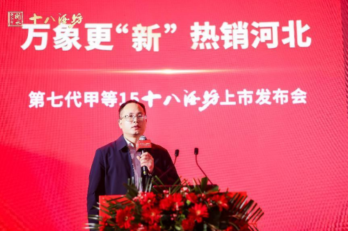 北京卓鹏战略咨询有限公司董事长田卓鹏作“次高引领、热销河北”主题演讲。发布会上,田卓鹏对当下社会经济大环境和酒业行业周期进行了预判分析,他表示,未来名酒效应将进一步凸显,以老名酒、泛名酒和新名酒为代表的三类名酒将引领竞争新时代,以甲等15十八酒坊为代表的300~500元价格带产品将成为酒业升级、业绩增长的主要动力。田总认为,随着消费市场不断扩容,300-500元价格带消费场景将从政商务消费向普及消费迭代;未来在河北白酒市场300元价位带,甲等15十八酒坊有着持久的成长动力和高额的发展空间。