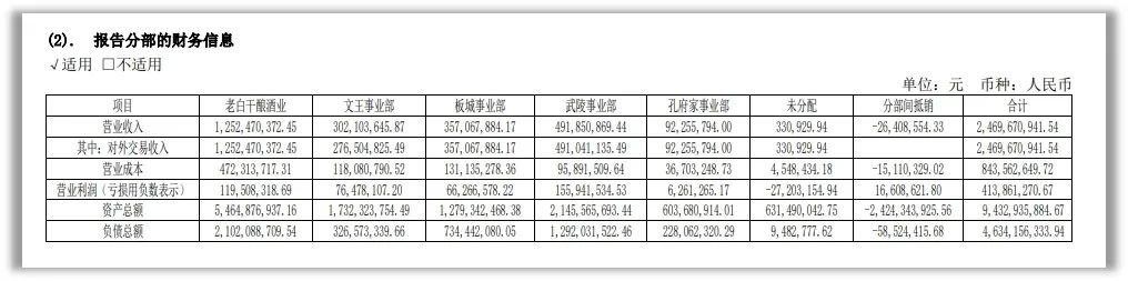 五种主要酒类,分属五个独立的事业部。今年上半年,老白干酿酒业实现营业收入12.52亿元,占总营业收入的50.71%;文王贡酒的文王事业部实现营业收入3.02亿元,占总营业收入的12.23%;板城烧锅酒的板城事业部实现营业收入3.57亿元,占总营业收入的14.46%;武陵酒的武陵事业部实现营业收入4.92亿元,占总营业收入的19.92%;孔府家酒的孔府家事业部实现营业收入9225.58万元,占总营业收入的3.74%。