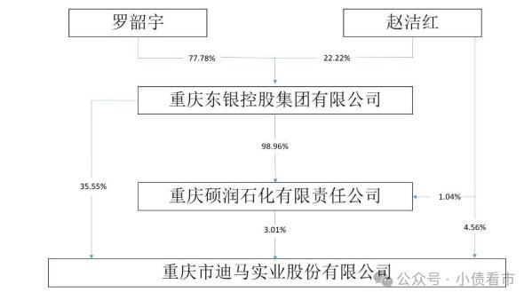 从股权结构看,迪马股份第一大股东东银控股持股比例为35.55%,公司实际控制人为罗韶宇。