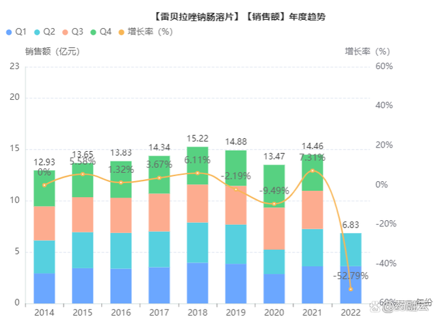 作为质子泵抑制剂类,雷贝拉唑钠存在酸不稳定问题,其肠溶制剂的开发以及BE试验均具有一定的挑战度。其中济川药业的雷贝拉唑钠肠溶胶囊市场占有率排名第一,且领先规模优势常年保持,此次又拿下了雷贝拉唑钠肠溶制剂新品种的过评,或将再加大济川药业在该40亿大品种市场内已有的优势,进一步拓宽市场。