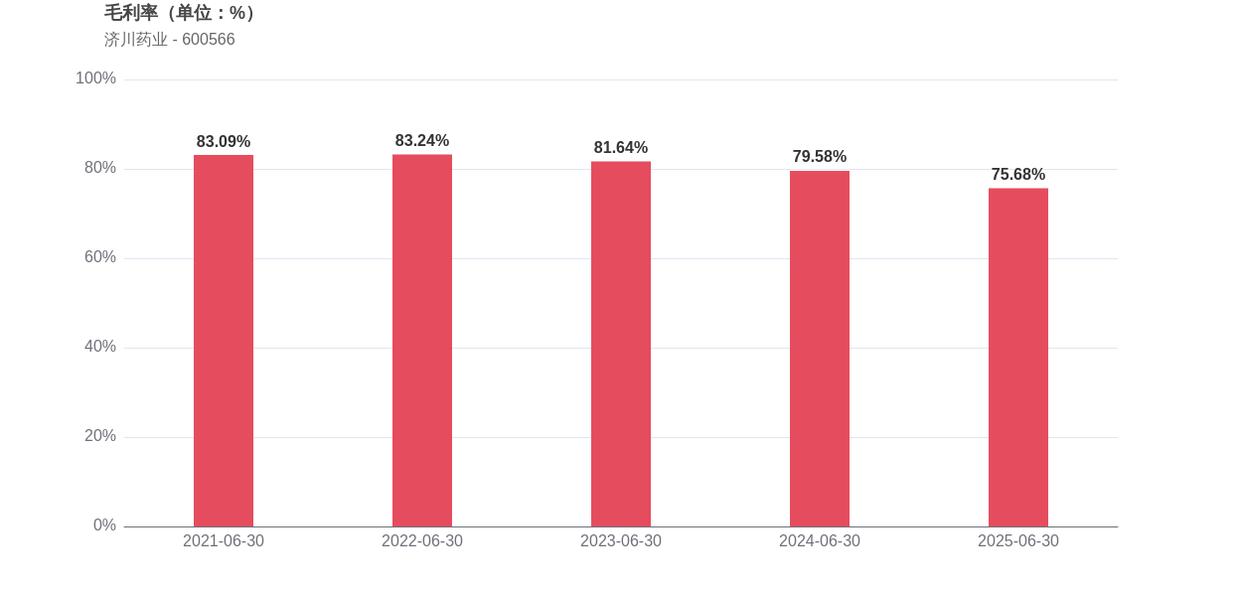 从反映盈利质量的指标来看,济川药业净利率由2024年上半年的33.25%下滑至26.39%,下降6.86个百分点,毛利率从79.58%下滑至75.68%,已连续3年同期下滑,净资产收益率同比下降4.64个百分点至4.91%。
