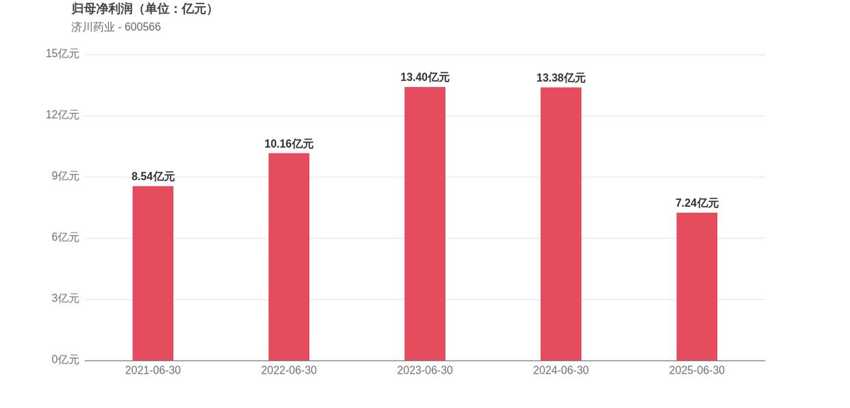 在2025年上半年,济川药业的经营业绩出现明显下滑,实现营业收入27.49亿元,同比下滑31.87%,归母净利润7.24亿元,同比下滑45.87%。引人关注的是,公司二季度归母净利润仅为2.84亿元,环比一季度减少1.56亿元,降幅达35.5%。