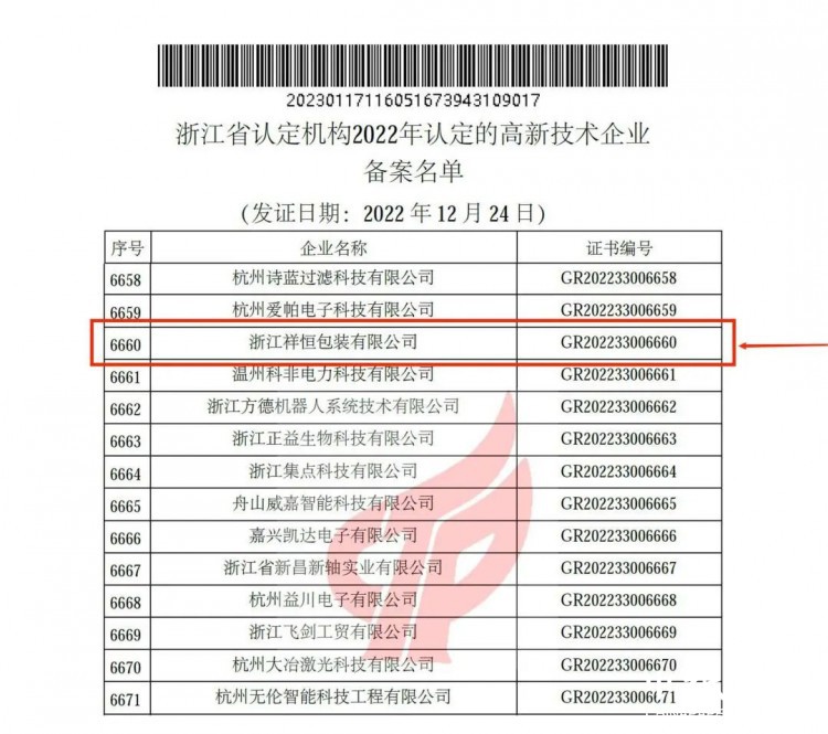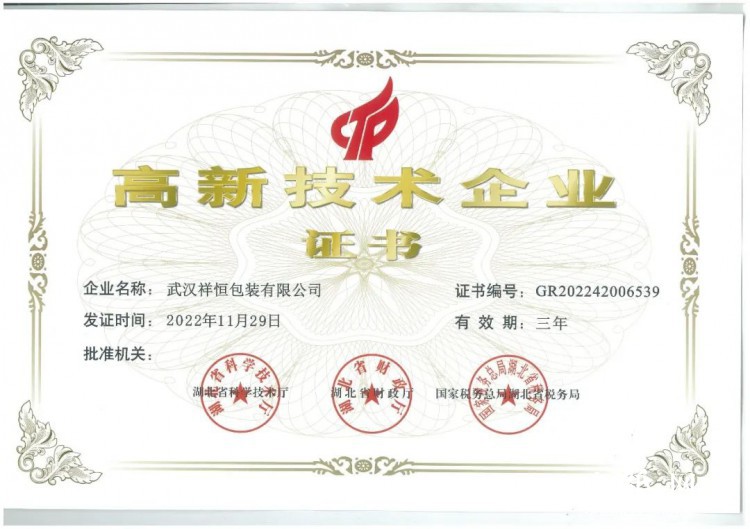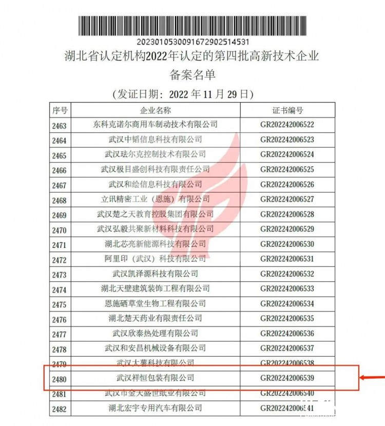近日,山鹰国际子公司武汉祥恒包装有限公司、浙江祥恒包装有限公司双双获得2022年度高新技术企业证书。至此,山鹰国际已有9家子公司获评国家高新技术企业。