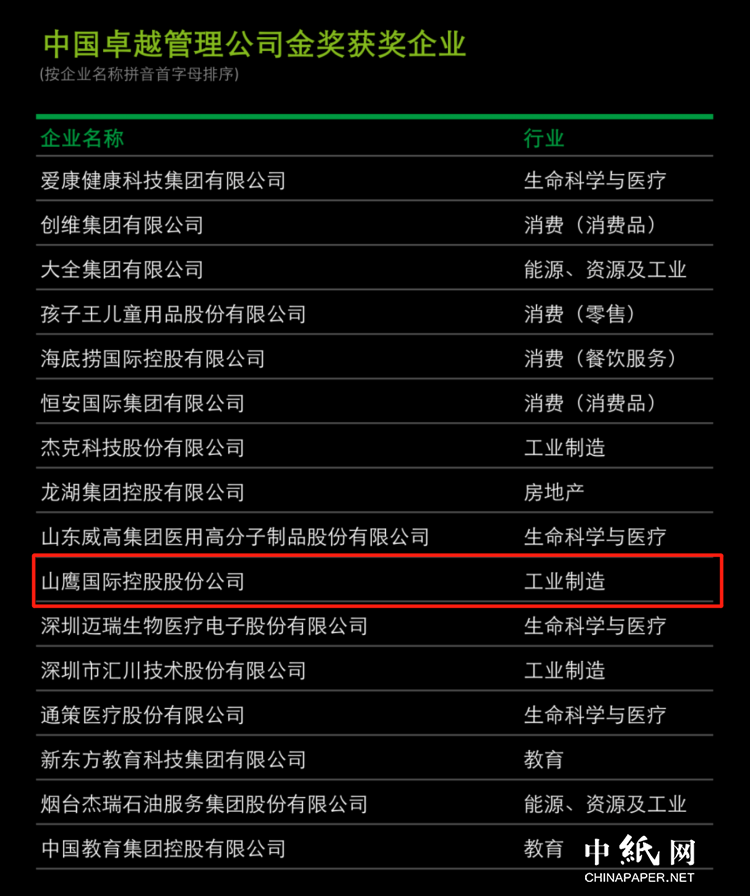 近日,德勤第五届中国卓越管理公司(Best Managed Companies,以下简称“BMC”)项目颁奖典礼在苏州隆重举办。本届BMC项目共有58家企业获奖,包含11家新晋企业、16家金奖企业和31家连续获奖企业。山鹰国际控股股份公司连续5年荣获“中国卓越管理公司”奖项,成为中国首批BMC金奖企业。