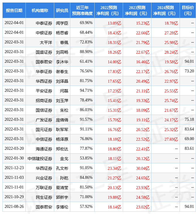 最新盈利预测明细如下: