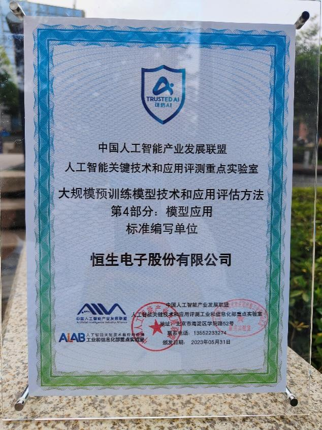 31日下午,由中国信通院、中国人工智能产业发展联盟主办,人工智能关键技术和应用评测工业和信息化部重点实验室(大模型工作组、生成式人工智能工作组)承办的“大模型技术应用”分论坛举行。在本次分论坛上,中国信通院正式发布了由恒生电子等40余家企业共同参与编写的《大规模预训练模型技术和应用评估方法第4部分:模型应用》标准,并为恒生电子等参编企业颁发标准参编证书。