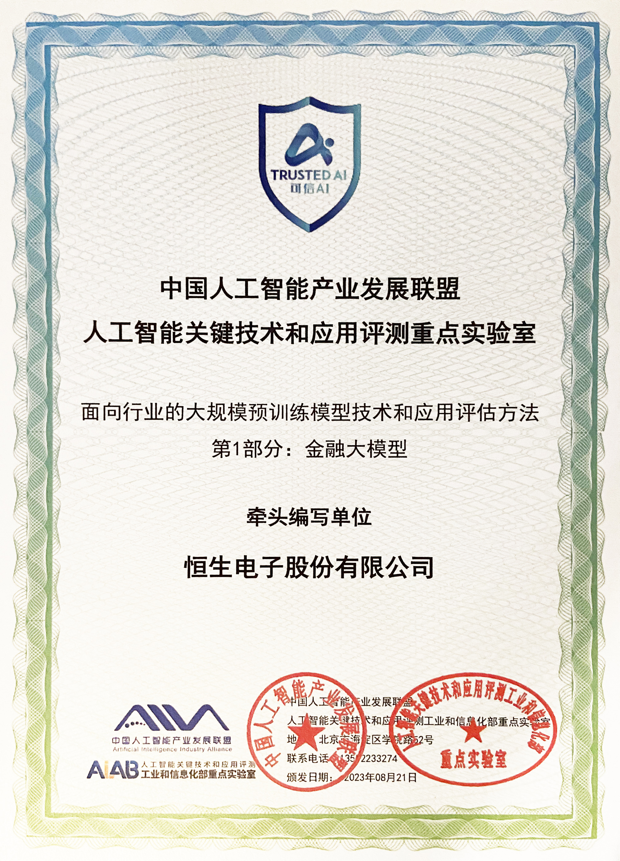 此次参与牵头编写金融大模型标准,恒生电子充分总结自身在金融大模型建设以及业务场景实际应用中的实践,梳理金融行业大模型评估标准,为后续金融大模型在数据安全、合规落地、部署模型等方面指明建设方向,也为大模型深入金融业务场景提供领先范式,进一步推动金融业务的智能化创新。