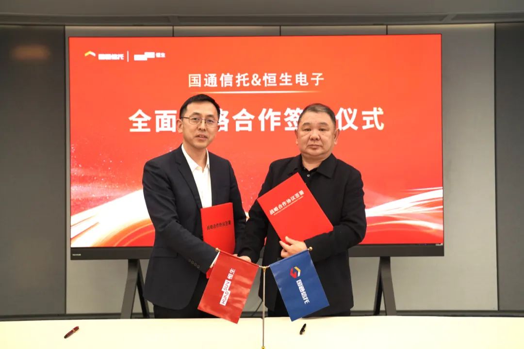 3月6日,国通信托与恒生电子在杭州举行战略合作签约仪式。国通信托党委书记、董事长陈建新,恒生电子执行总裁张永出席并代表双方签署战略合作协议。国通信托信息技术部总经理邹小华、特殊资产管理部资深经理胡龙、杭州财富中心总经理王金芬、信息技术部高级经理赵红军,恒生电子信托行业总部总经理赵辉出席仪式。