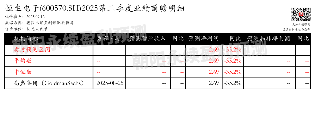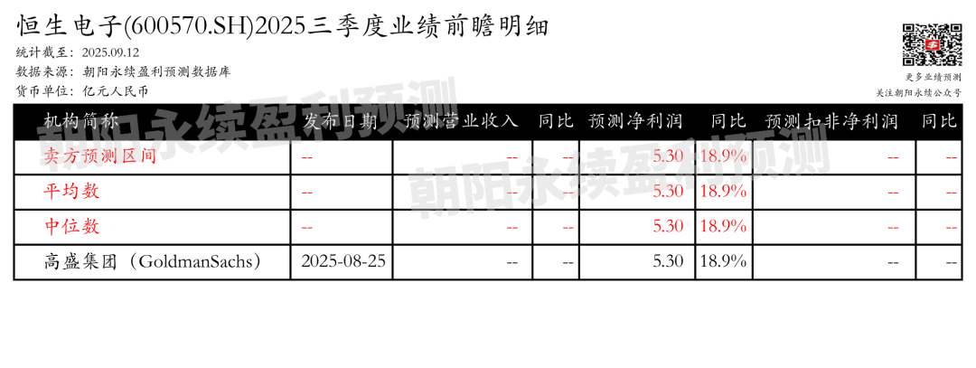 截至2025年09月12日,根据朝阳永续季度业绩前瞻数据: