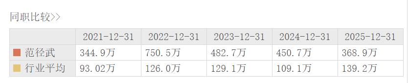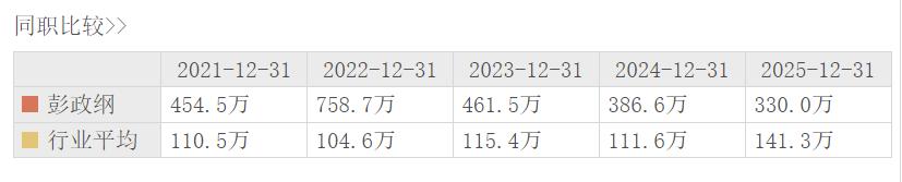 具体来看,2022年至2025年,彭政纲薪酬分别为758.7万元、461.5万元、386.6万元、330.0万元,2025年同比下降14.64%;范径武薪酬分别为750.5万元、482.7万元、450.7万元、368.9万元,2025年同比下降18.15%。