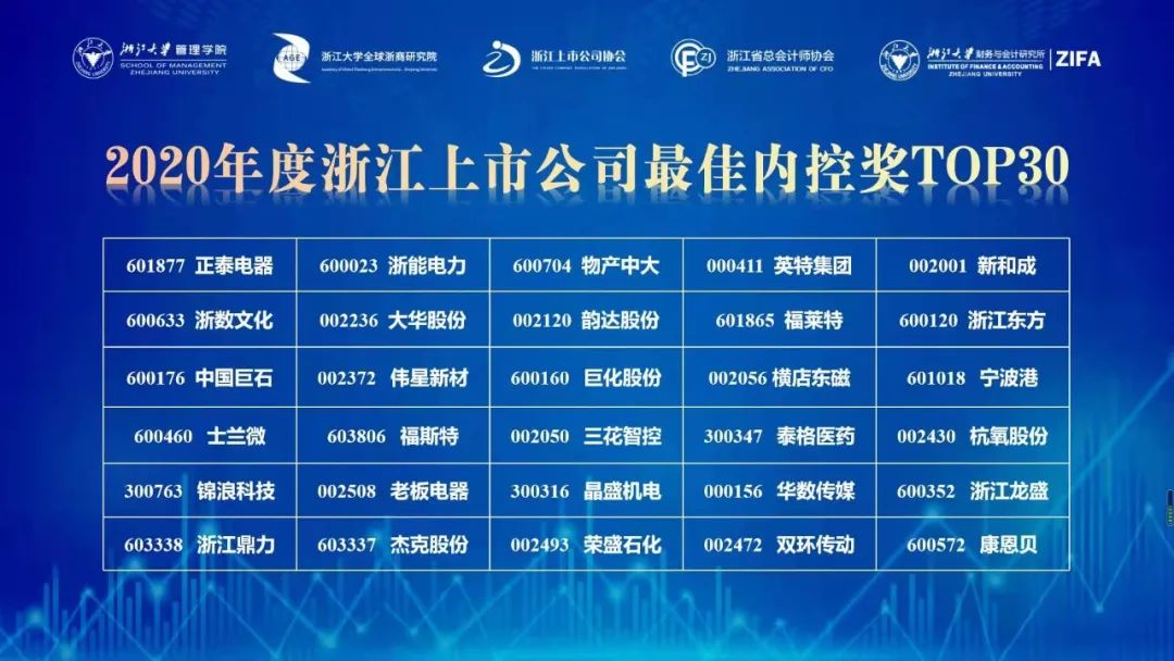 12月19日,2021年上市公司高质量发展论坛暨浙江上市公司内部控制指数发布会举行。论坛发布了《2020浙江上市公司内部控制指数报告》,并揭晓2020年度浙江上市公司最佳内控奖TOP30,康恩贝股份作为新进力量首次入榜。