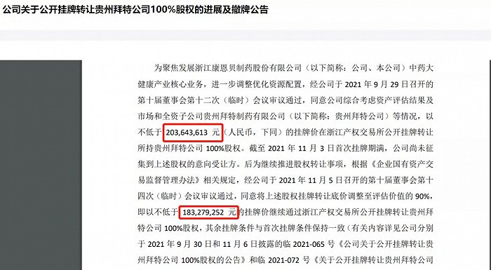 值得一提的是,上述四家公司均为康恩贝前期收购而来,且贵州拜特是是康恩贝曾经王牌产品丹参川芎嗪注射液的生产公司,彼时收购价为19.5亿元,如今转让价从2.03亿再下调至1.83亿却依旧无人问津。