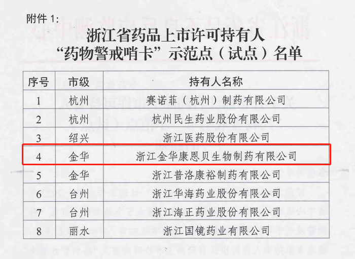 近日,浙江省药品不良反应监测中心发布了《关于公布浙江省药品上市许可持有人“药物警戒哨卡”示范点(试点)的通知》。经省市两级药品不良反应监测中心综合评估,金华康恩贝顺利通过遴选,成为浙江省药品上市许可持有人“药物警戒哨卡”示范点(试点)之一。