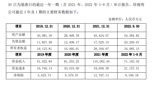 虽然两次转让所持股权,但珍视明公司的业绩并不差。2020年、2021年、2022年1~9月,珍视明公司分别实现营业收入8.12亿元、11.01亿元和7.12亿元,净利润分别为9579.57万元、1.28亿元和9196.18万元,各报告期末的净资产分别为1.61亿元、2.84亿元和3.41亿元。