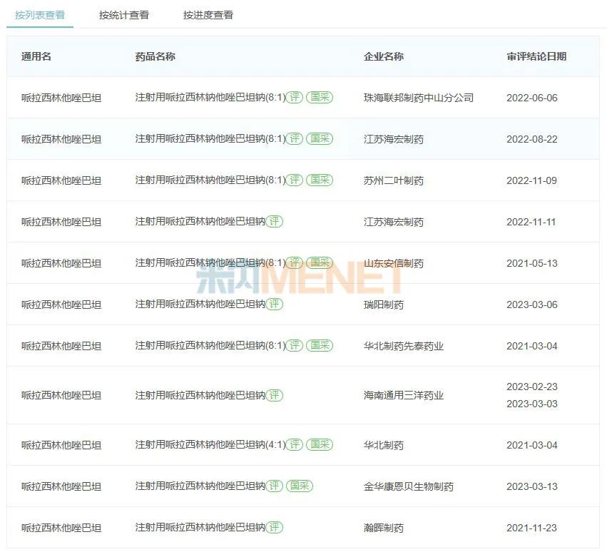 目前哌拉西林他唑巴坦过评/视同过评的企业数量达10家,竞争异常激烈。