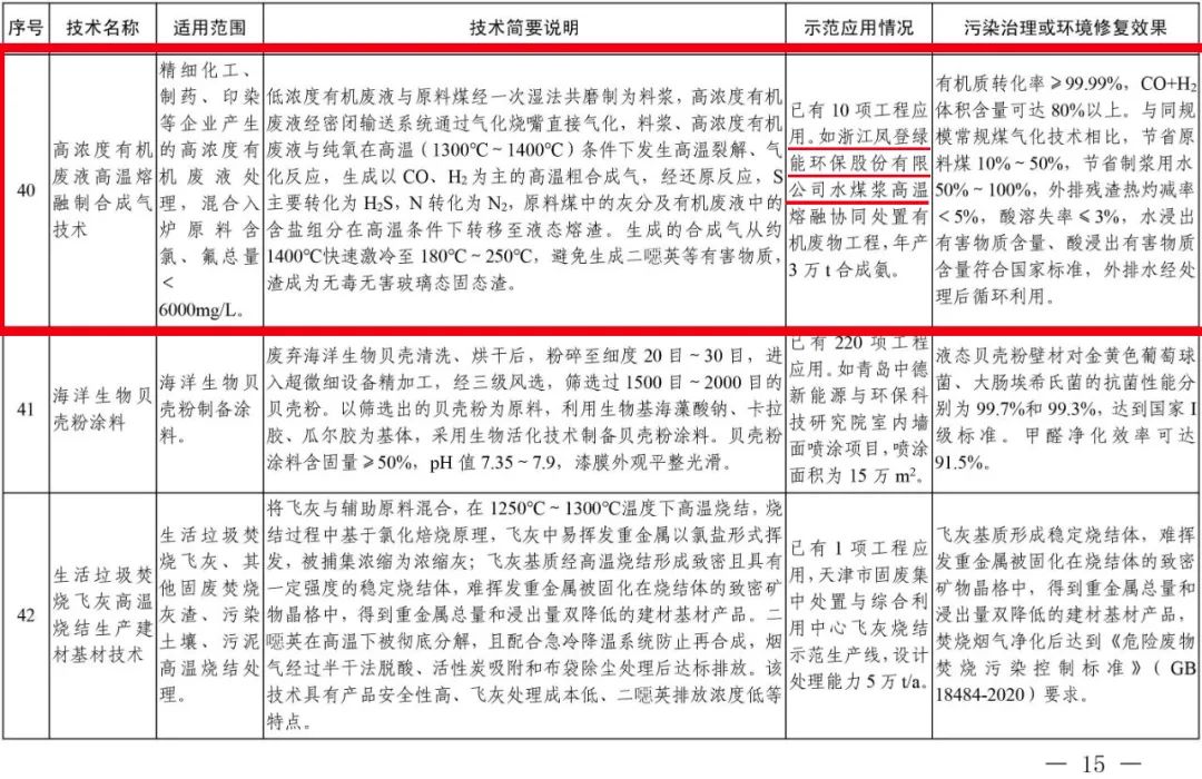 道道网讯 9月12日,国家科技部正式公布首批《国家绿色低碳先进技术成果目录》(85项),康恩贝集团旗下凤登绿能环保股份有限公司的“高浓度有机废液高温熔融制合成气技术”入选其中。这是凤登自去年以来相继获得“国家级专精特新''小巨人''企业”、“国家级绿色工厂”之后斩获的又一项国家级荣誉。据科技部此次公告,该目录的组织编制,是为了更好地推动科技成果转化和产业化应用,落实《关于构建市场导向的绿色技术创新体系的指导意见》,加速绿色低碳技术升级,供各类工业企业、财政投资或产业技术资金、各类绿色低碳领域的公益、私募基金及风险投资机构等用户在进行节能减排技术升级和改造时参考。