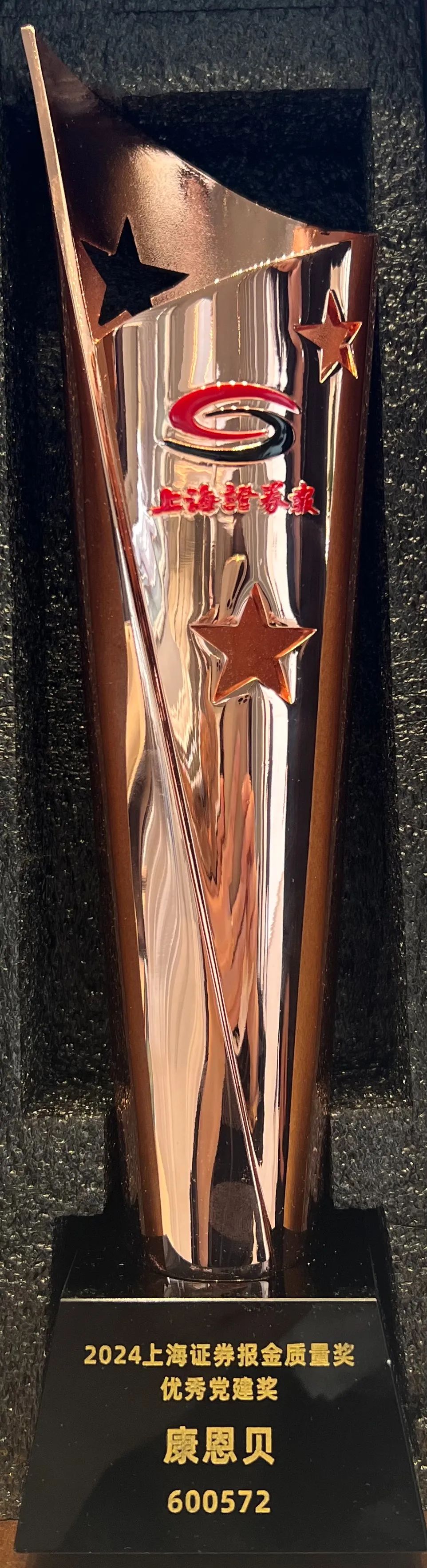 12月27日,由上海证券报主办的“2024上市公司高质量发展大会暨‘金质量’奖颁奖典礼”在上海举行,康恩贝(600572.SH)荣获“金质量?优秀党建奖”。“金质量”奖是国内上市公司领域内最权威、最具影响力的奖项之一,其中的“优秀党建奖”主要考量上市公司党建工作在有效促进上市公司治理、促进经营发展等方面发挥的作用。