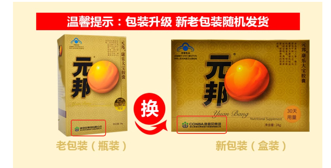 值得注意的是,该产品的外包装上印有“元邦”字样,以及图案“橙色球体”。此外,在产品的旧版包装上,印有“康恩贝集团有限公司浙江康恩贝集团医疗保健品有限公司”的图案。在产品的新版包装上,则是印有“CONBA康恩贝集团浙江康恩贝集团医疗保健品有限公司”的字样。
