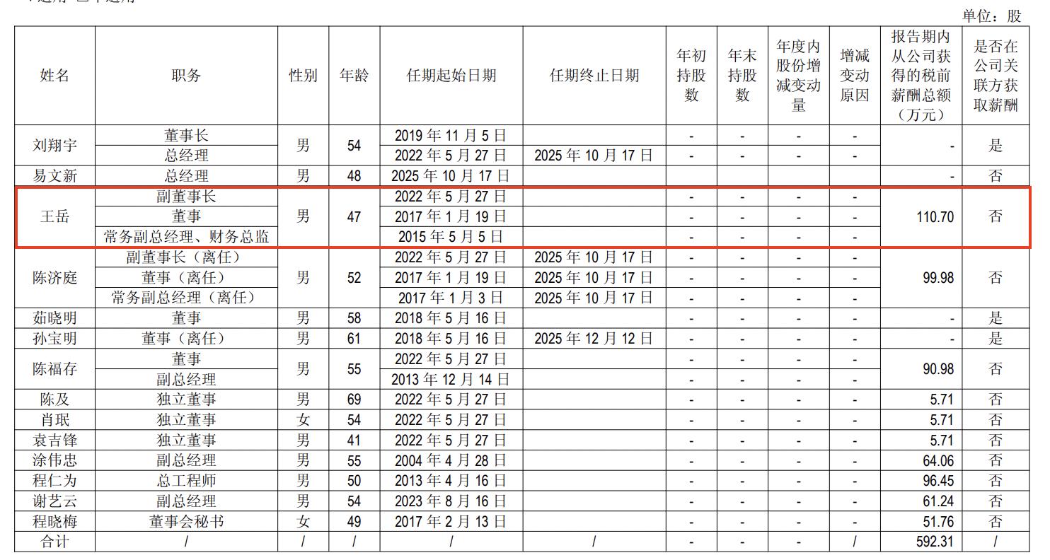 薪酬方面,2025年,王岳薪酬110.7万元,相较于上年薪酬71.96万元增长53.84%。而刘翔宇在公司关联方获取薪酬。
