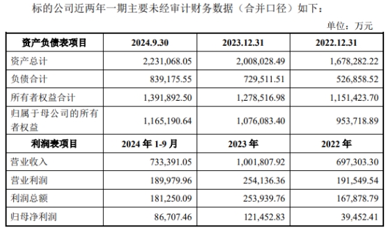 2022年、2023年、2024年1-9月,电力集团营业收入分别为69.73亿元、100.18亿元、73.34亿元,归母净利润分别为3.95亿元、12.15亿元、8.67亿元。