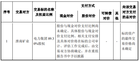 淮河能源昨晚披露的发行股份及支付现金购买资产并募集配套资金暨关联交易预案显示,公司拟通过发行股份及支付现金的方式购买淮南矿业持有的淮河能源电力集团有限责任公司(以下简称“电力集团”)89.30%股权并募集配套资金。
