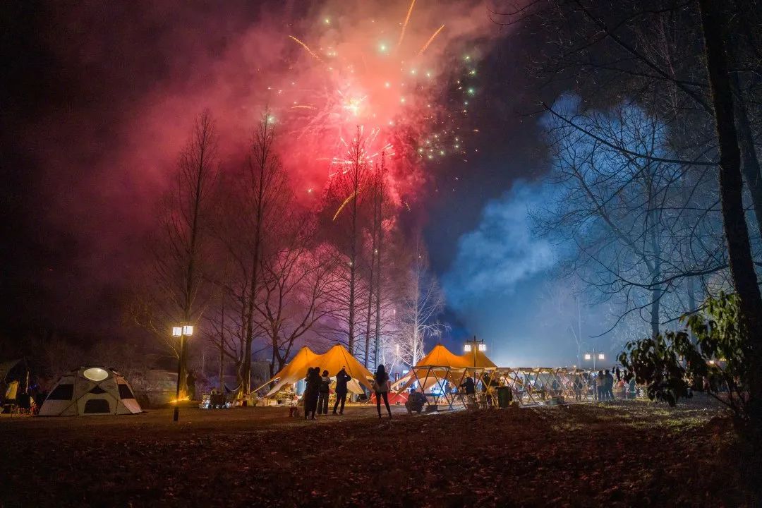 12月31日,祥源·齐云山生态文化旅游度假区内横江畔的坐忘花园热闹非凡,游人如织。现场集结了色香味俱全的特色小吃、书法原创、精美手工等各类摊位,吸引游客围绕驻足。到了夜晚,熊熊篝火燃起,惊艳的跨年焰火如约而至,游客们纷纷拍照欢呼记录,在极具氛围感的跨年夜开启新的一年。