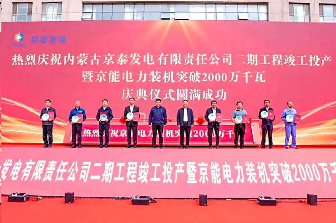 仪式由京能电力党委副书记、总经理李染生主持,准格尔旗副旗长刘玉成,京能电力党委书记张伟,伊泰煤炭股份总经理杨嘉林,山西粤电总经理金伟韧,京能集团投资部副部长尹卫方,京能电力副总经理、京泰发电董事长李前宇,京泰发电党委书记刘贵喜,共同启动仪式并宣布京泰发电二期竣工投产暨京能电力装机突破2000万千瓦。