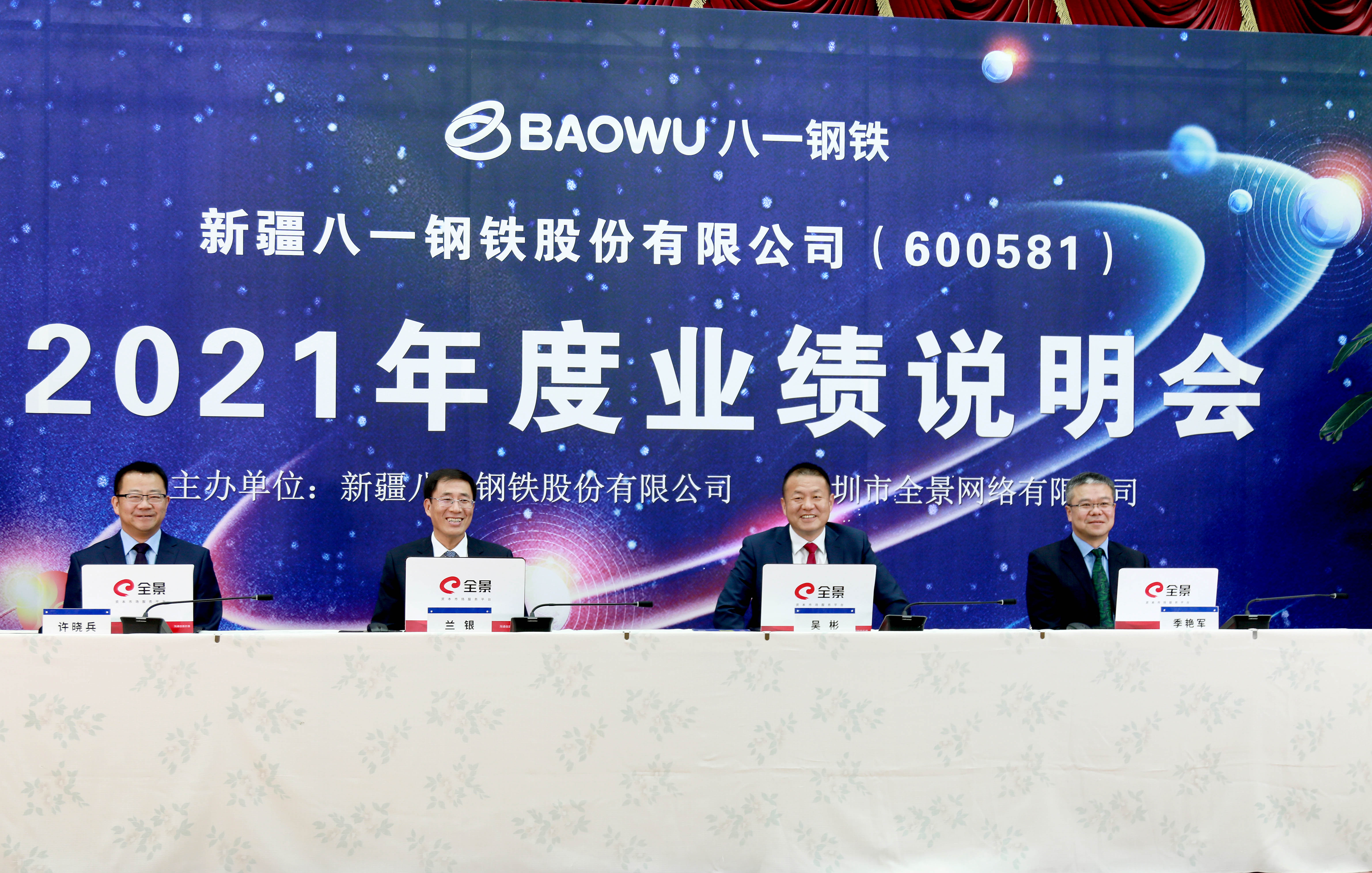 八一钢铁党委书记、董事长吴彬在业绩说明会致辞中表示,2021年,在自治区党委、中国宝武集团党委以及八钢公司党委的正确领导和大力支持下,八一钢铁深入贯彻落实新发展理念,坚定不移推进公司高质量发展,取得了良好经营绩效,利润总额创历史最好水平,核心竞争力进一步提升。展望未来,吴彬指出,在新的奋斗征程上,八一钢铁将坚守“屯垦戍边、钢铁报国”的初心,践行“钢铁报国、开放融合、严格苛求、铸就强大”的宝武精神,持续推进企业做强做优做大,为把八钢建设成为中国西北及中亚地区钢铁业引领者、为把中国宝武建成世界一流伟大企业而不懈奋斗。