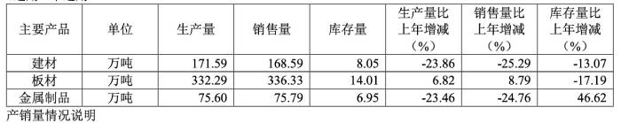 主要产品产销量出现下滑。截自八一钢铁业绩报