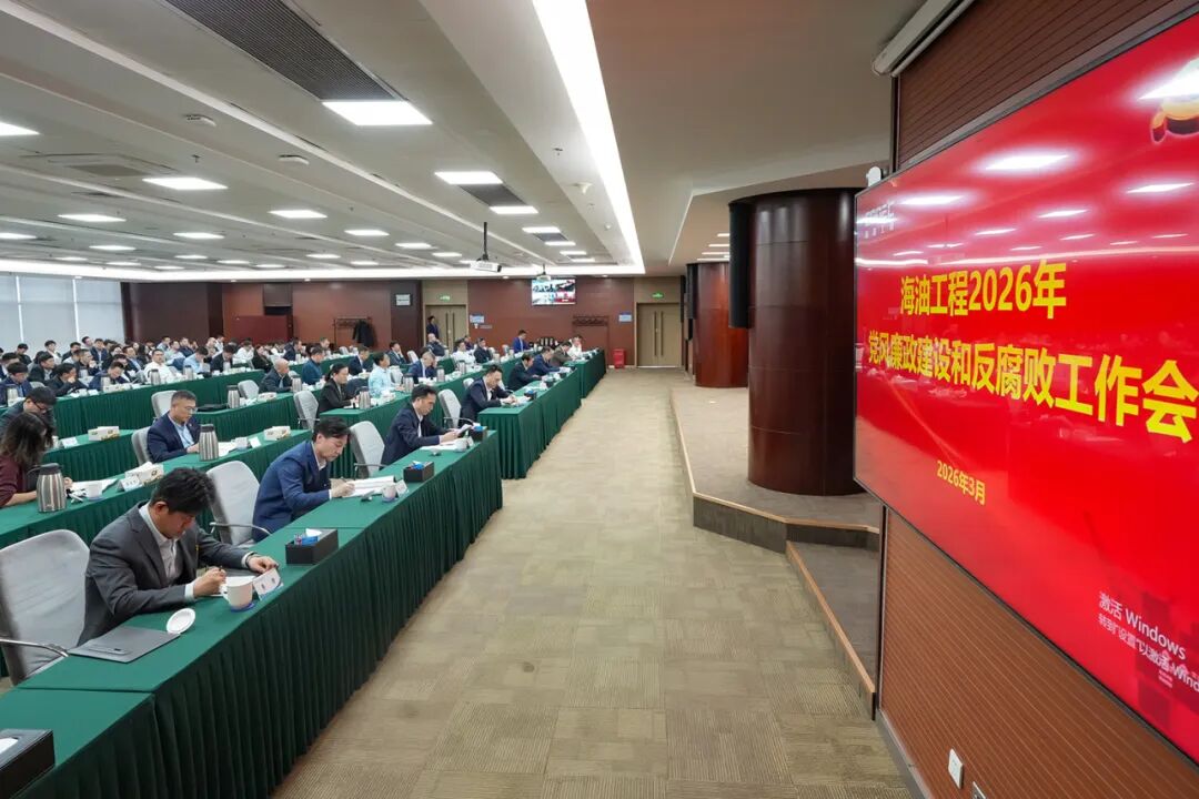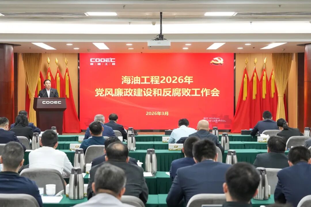 3月3日,海油工程召开2026年党风廉政建设和反腐败工作会。会议坚持以习近平新时代中国特色社会主义思想为指导,深入学习贯彻落实党的二十大和二十届历次全会、二十届中央纪委五次全会精神,认真落实集团公司党风廉政建设和反腐败工作会议部署,总结2025年党风廉政建设和反腐败工作,部署2026年重点任务,动员公司各级党组织以更高标准、更实举措推进全面从严治党,为公司“十五五”开好局、起好步提供坚强政治保障。