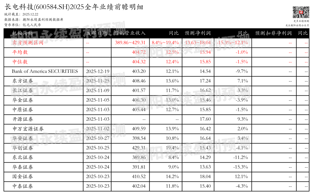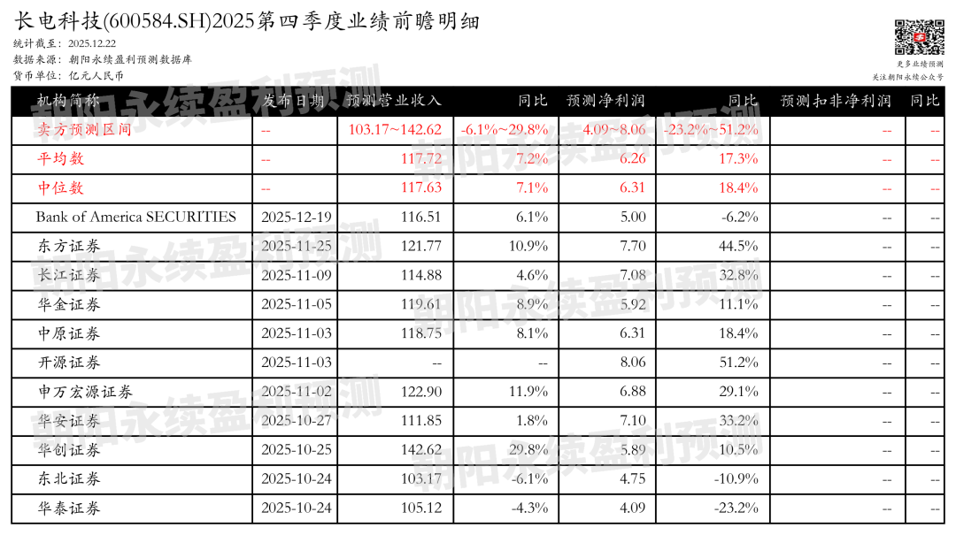 截至2025年12月22日,根据朝阳永续季度业绩前瞻数据: