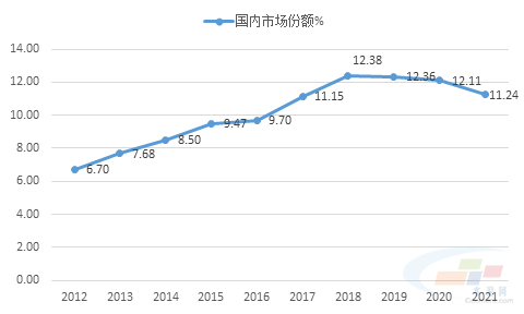 2008年,海螺水泥一跃成为国内第一家水泥熟料销量破亿吨的水泥企业,2014年水泥销量达2.1亿吨,六年时间实现翻番,2019、2020年则达2.9亿吨,但在2019年占国内的市场份额确实现了转折,出现三连降,2021年甚至降至了12%以下,退回四年前。