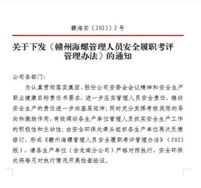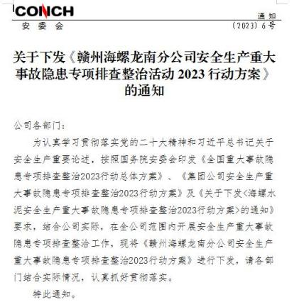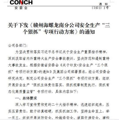 2.紧跟政府步伐,制定下发《赣州海螺龙南分公司安全生产“三个狠抓”专项行动方案》、《安全生产重大事故隐患专项排查整治活动2023行动方案》等阶段性重点工作方案,严抓落实应急救援物资。
