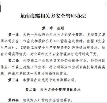 安全生产工作事关企业的生存和发展,更涉及广大员工的根本利益。如何有效提升安全水平?如何推动企业风险管控和安全生产标准化建设?采访我市部分风险管控和标准化示范企业,围绕安全生产谈体会、讲经验。他山之石,可以攻玉,希望能为全市企业提供借鉴,助力全市安全生产形势持续平稳向好。今天让我们一起走进龙南海螺水泥有限责任公司看这家企业如何落实企业第一责任夯实企业安全管理基础有效防控安全风险
