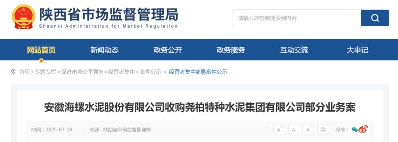 安徽海螺水泥股份有限公司收购尧柏特种水泥集团有限公司部分业务案