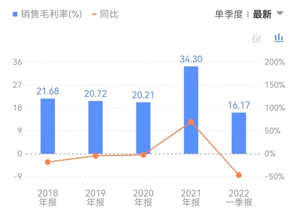 然而,在2021年全年净利实现倍增的基础上,金晶科技2022年一季度业绩却让人大跌眼镜。一季度公司实现营业收入17.82亿元,同比增长21.20%,归属上市公司股东的净利润1.45亿元,同比大幅下降59.16%。