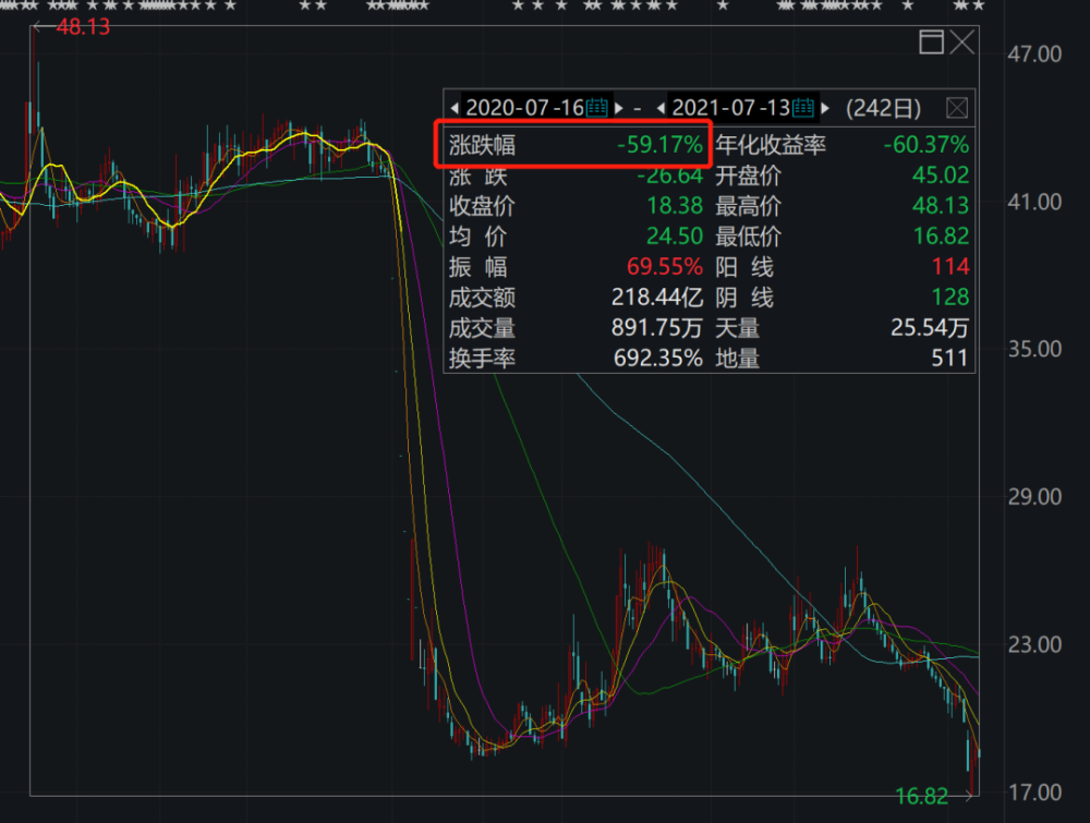 而磐京首次进入前十大股东的名单实在2019年的中报,随后不断加仓至第二大股东。而从2019年二季度至今,该股早已腰斩。