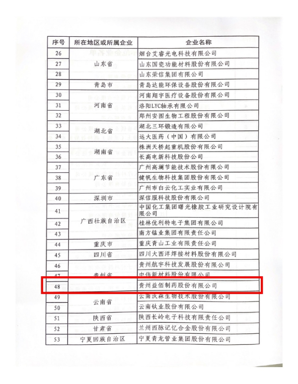 近日,工业和信息化部公示2022年国家技术创新示范企业名单,贵州益佰制药股份有限公司成功入选。本次,贵州共有3家企业获批国家技术创新示范企业。其中益佰制药作为贵州医药龙头企业,也是省内唯一入选的医药企业。